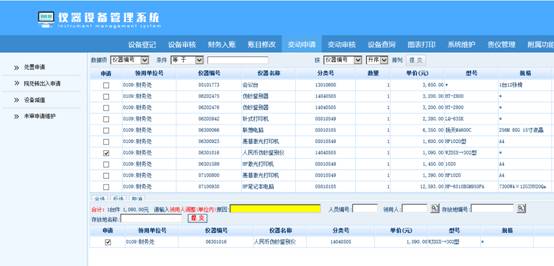 资产的变动申请,是在网上申请变动,并打印出变动申请单,完成相应的签章手续后,将变动申请单交与资产处审核。审核完成,才能在账上体现